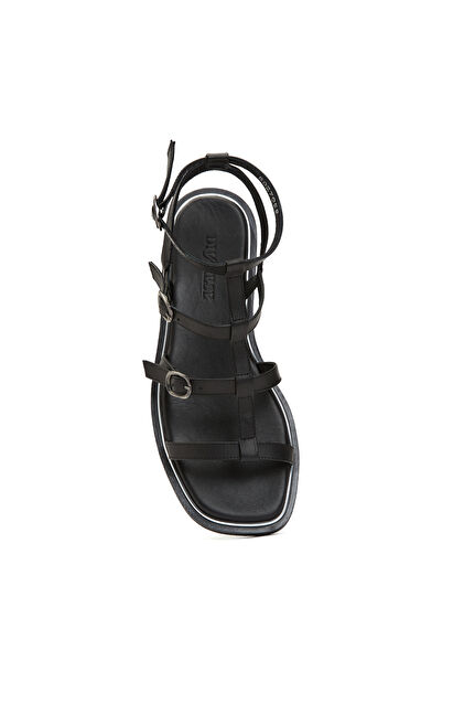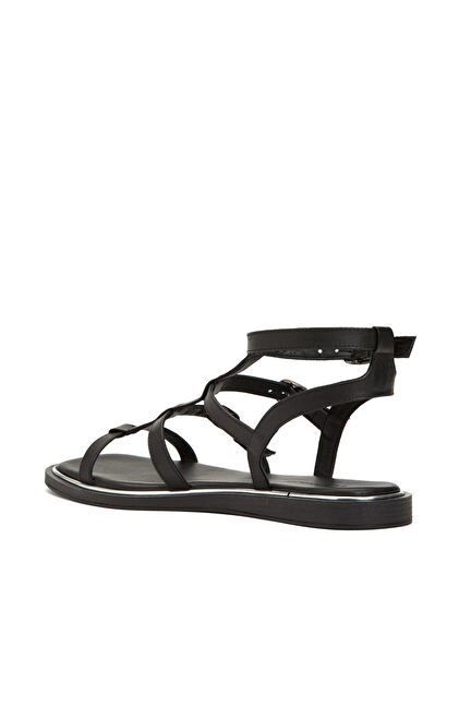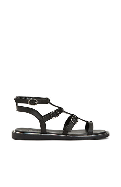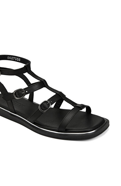 DIVARESE CASUAL Siyah Kadın Deri Sandalet