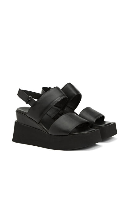Siyah Kadın Deri Sandalet