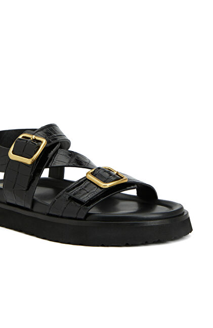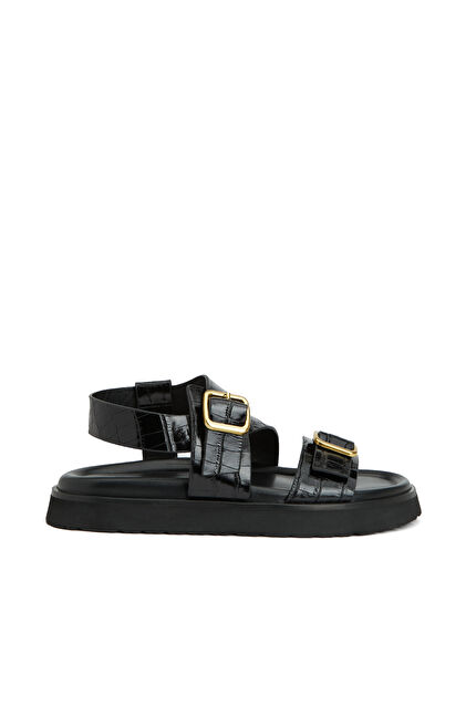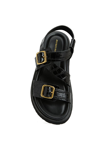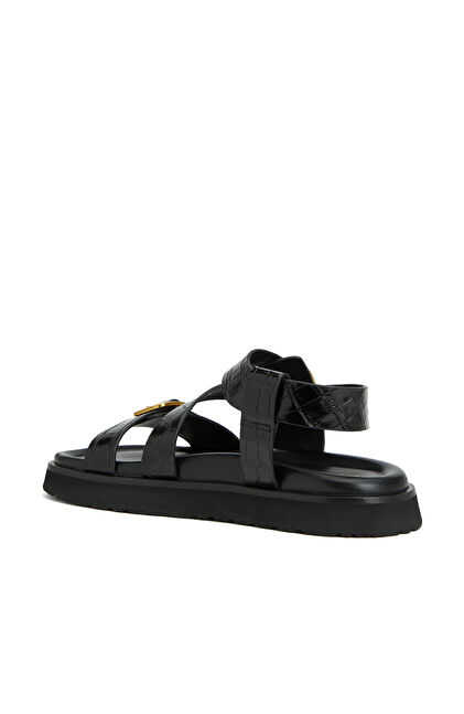 Siyah Kadın Deri Sandalet