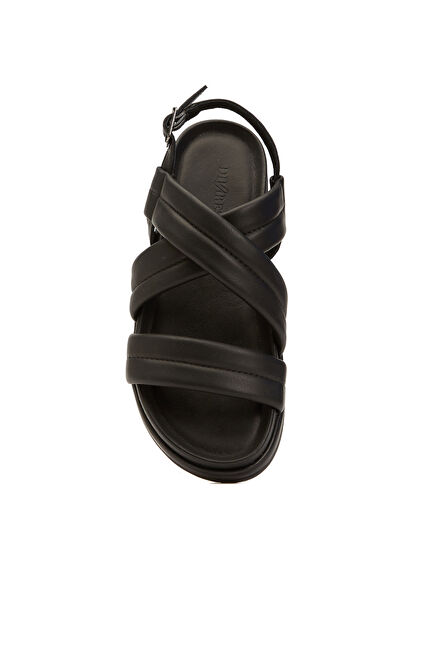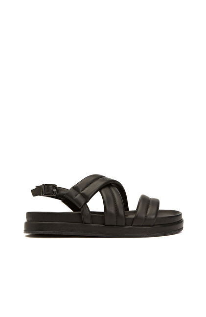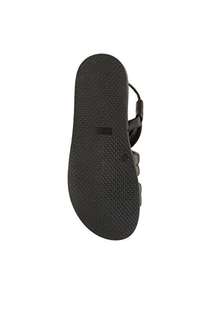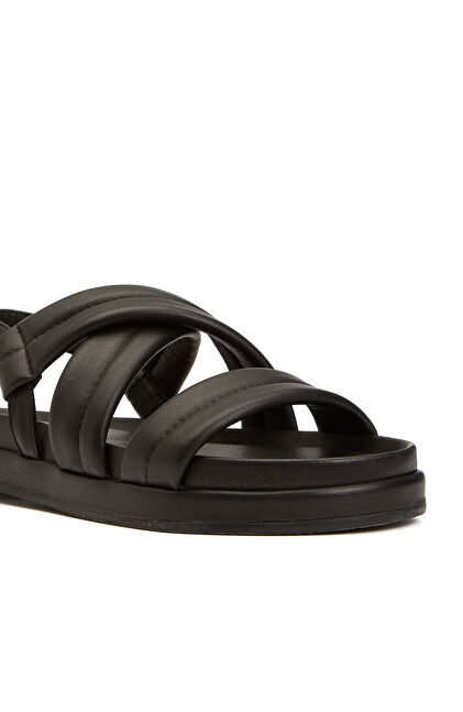 Siyah Kadın Dolgu Bantlı Deri Sandalet