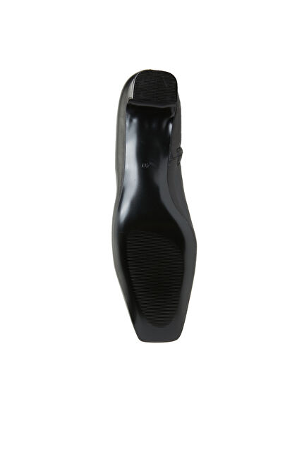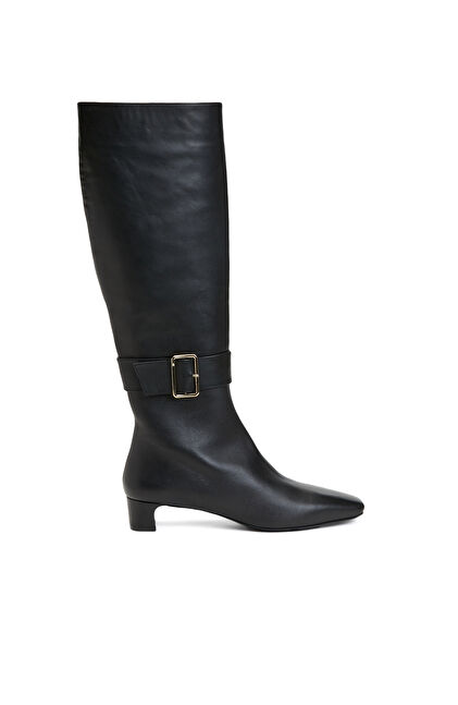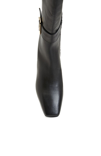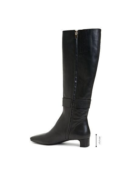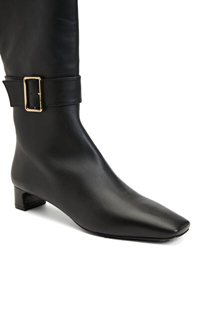 Siyah Kadın Küt Burun Kısa Topuklu Deri Çizme