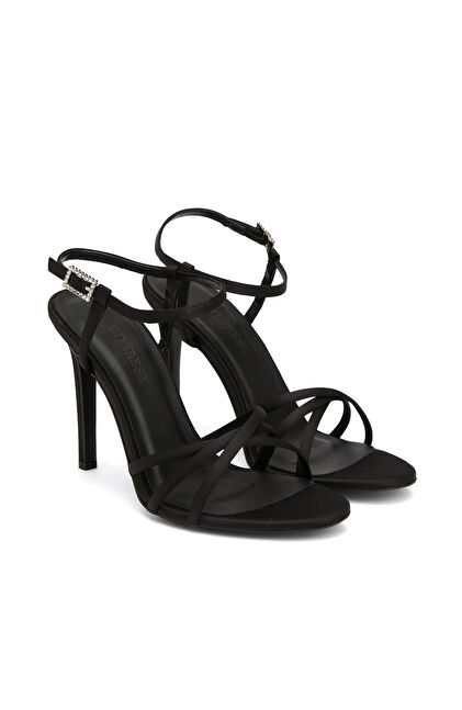 Siyah Kadın Saten Sandalet