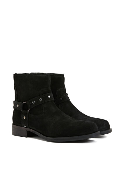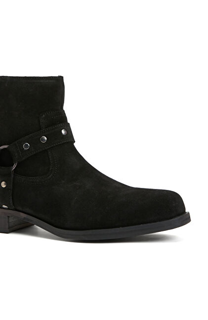 Siyah Kadın Süet Deri Kovboy Western Bot