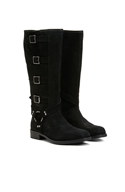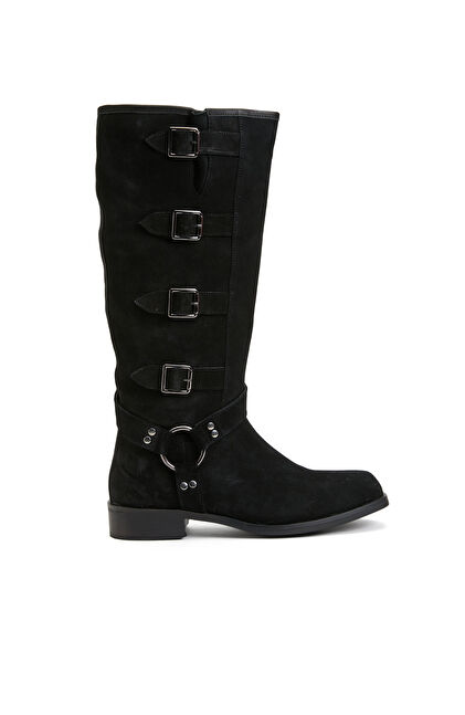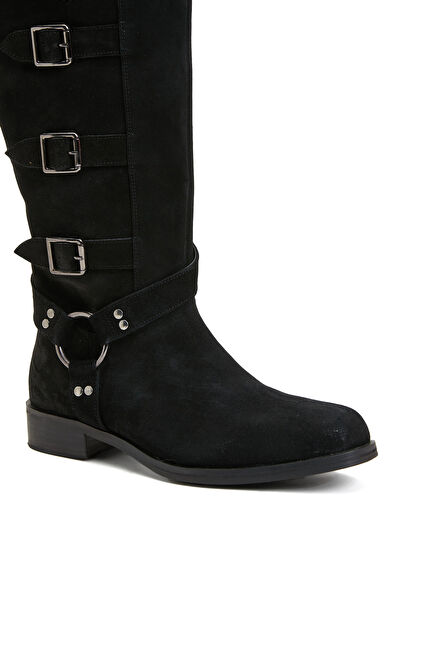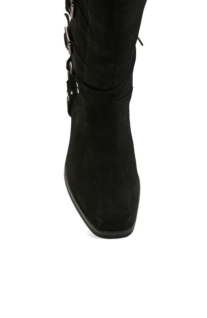 Siyah Kadın Süet Deri Kovboy Western Çizme
