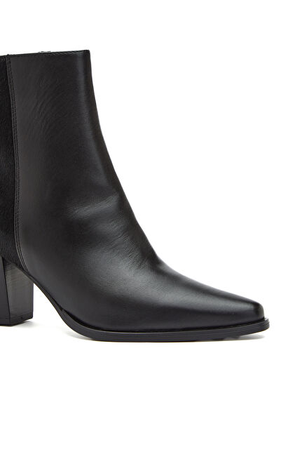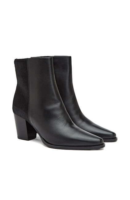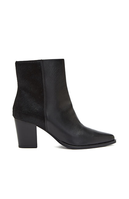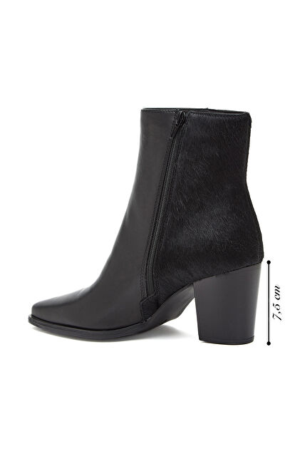 Siyah Kadın Tay Tüyü Detaylı Western Deri Bot
