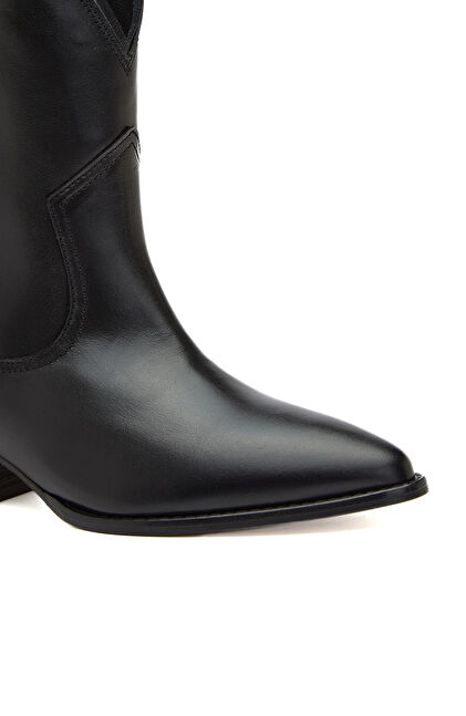 Siyah Kadın Western Deri Bot