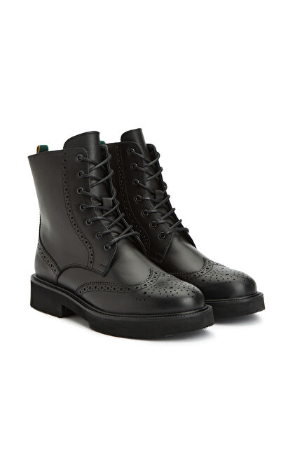 Siyah Kadın Zımbalı Deri Bot