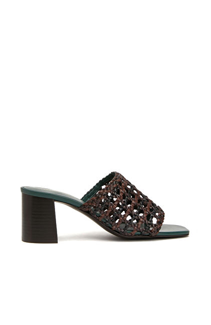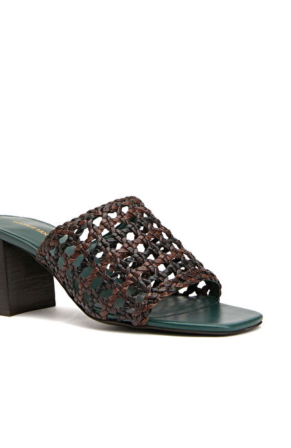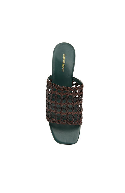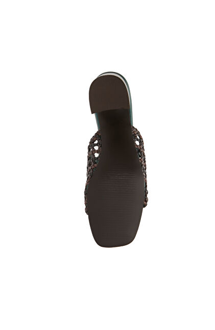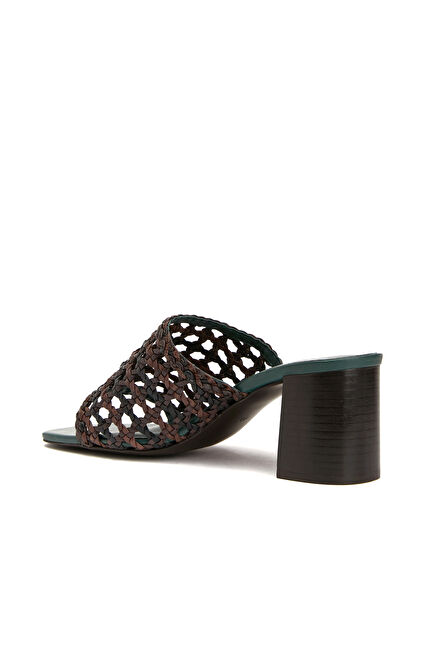 Siyah Kahverengi Kadın Deri Terlik