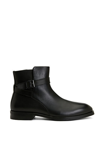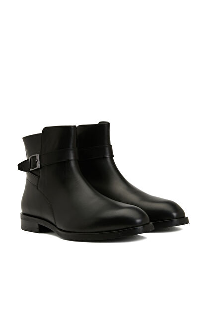 Siyah Kemer Tokalı Erkek Deri Bot