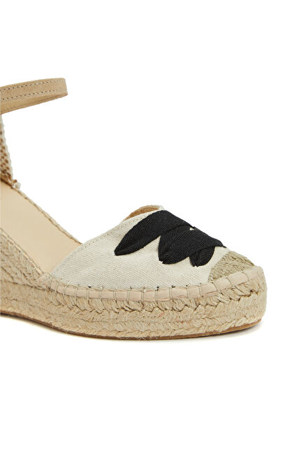 Bantlı; Kauçuk Tabanlı; Kumaş Örgü Detaylı Espadril; Topuk: 6,5 cm,