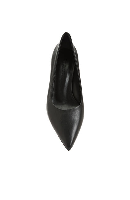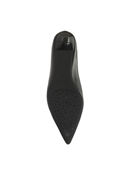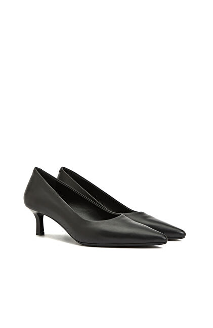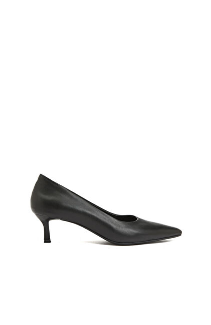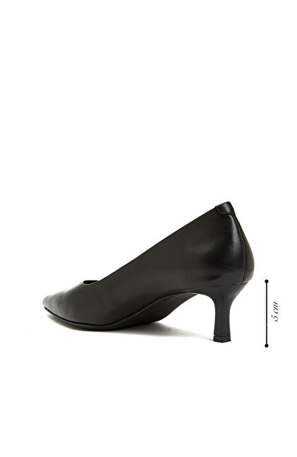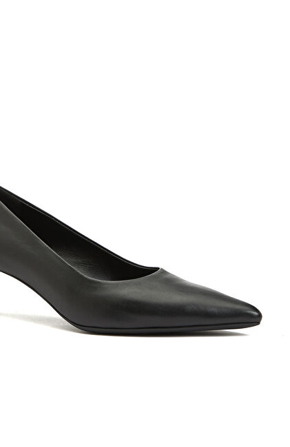 Siyah Kısa Topuklu Sivri Burun Kadın Deri Ayakkabı
