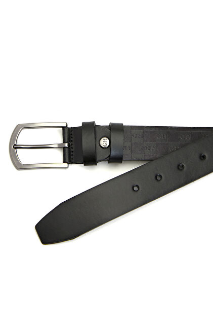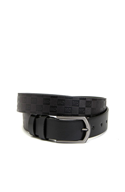 Siyah Logo Desenli Erkek Deri Kemer
