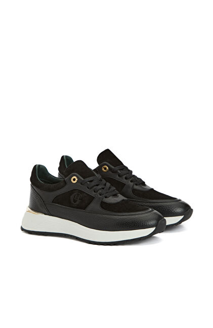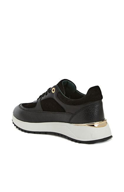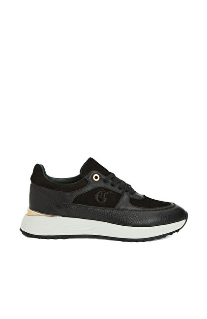 Siyah Nakış Detaylı Kadın Deri Sneaker