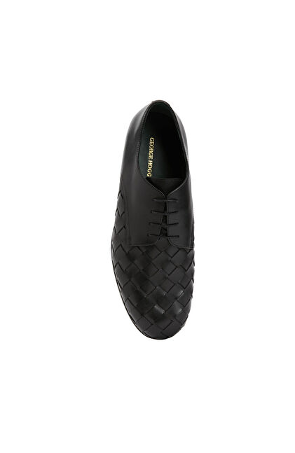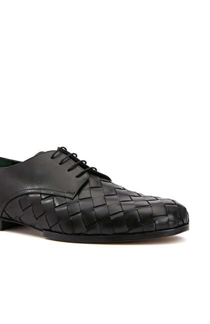 Siyah Örgü Dokulu Erkek Deri Ayakkabı