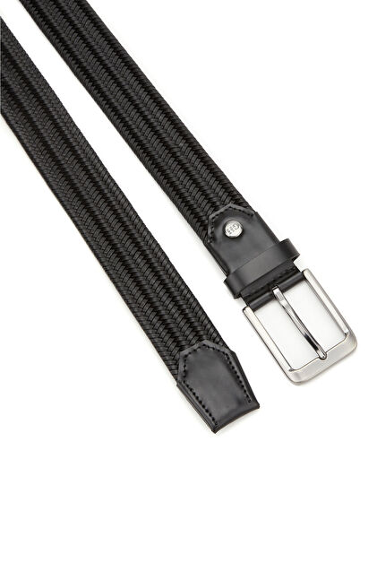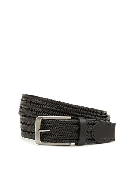Siyah Örgü Erkek Deri Kemer