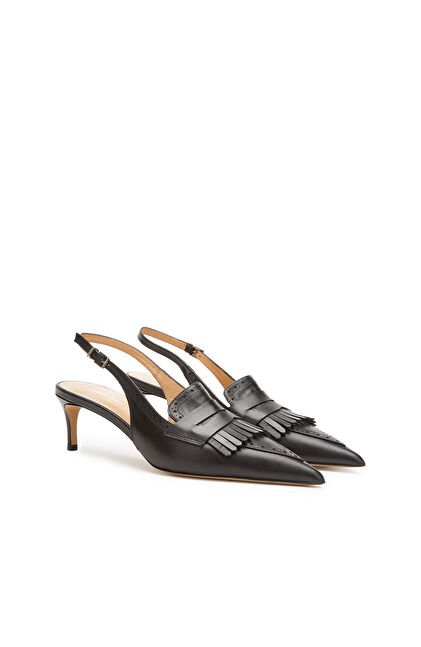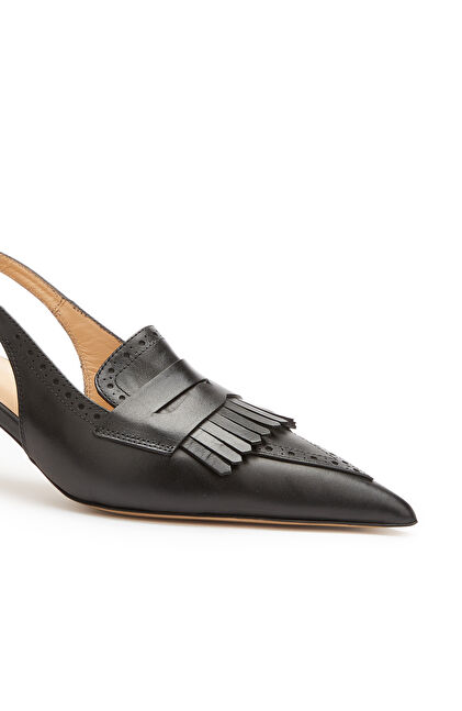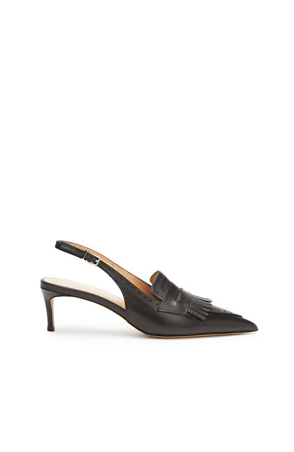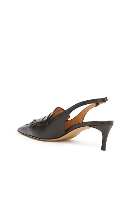 Siyah Püskül Detaylı Deri Topuklu Ayakkabı