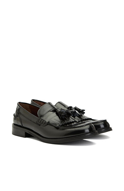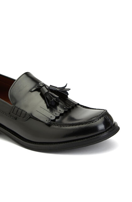 Siyah Püskül Detaylı Erkek Deri Loafer