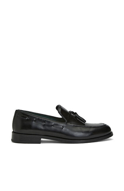 Siyah Püskül Detaylı Erkek Deri Loafer