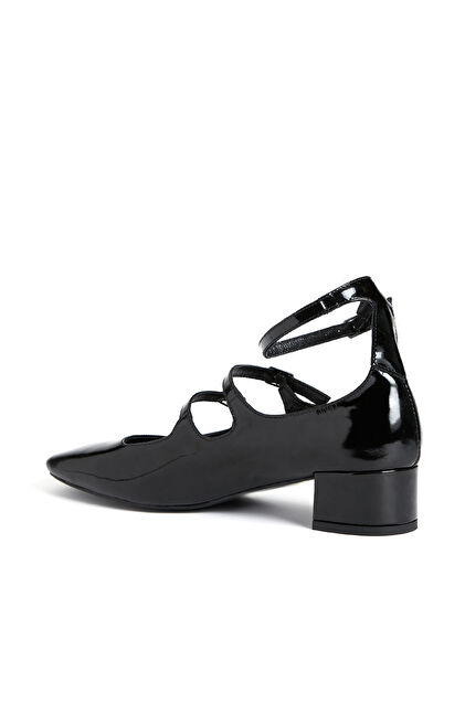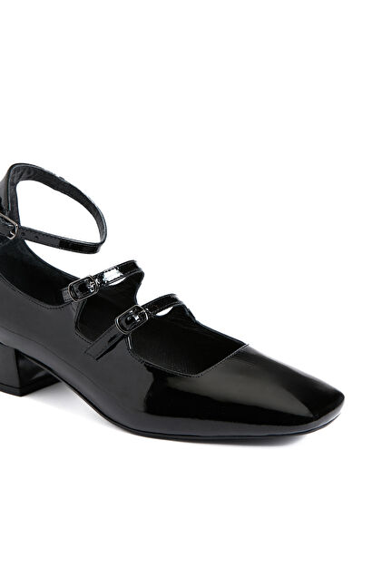 Siyah Rugan Kadın Topuklu Babet Ayakkabı