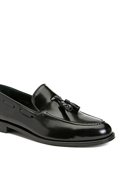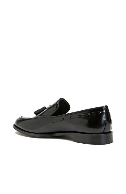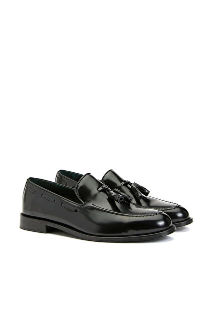 Siyah Rugan Püsküllü Erkek Deri Loafer