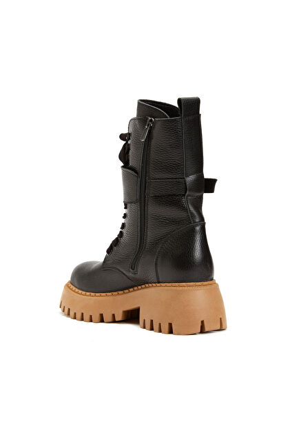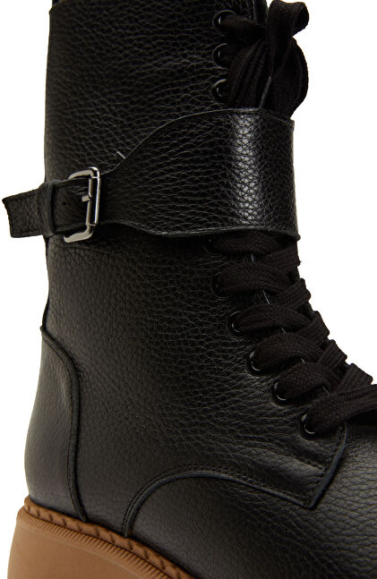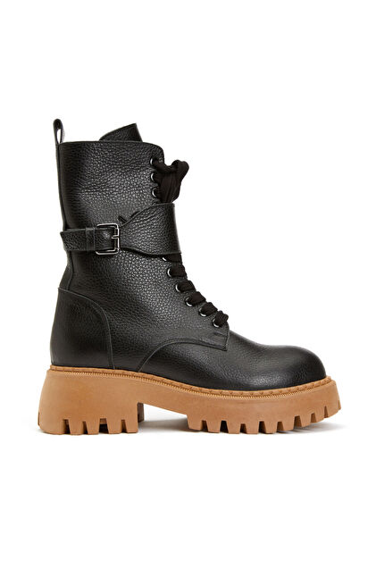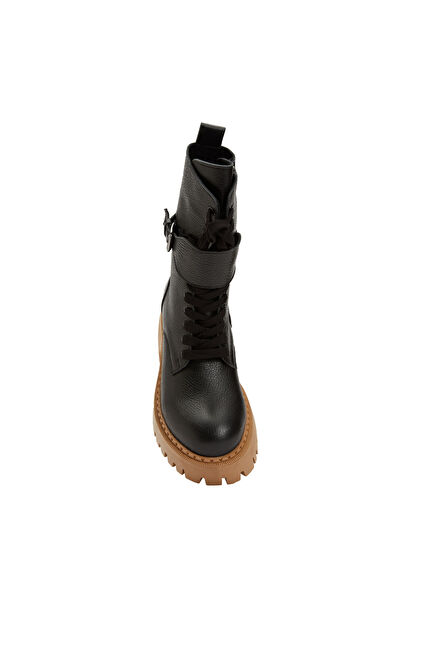 Siyah Toka Detaylı Kalın Taban Kadın Bot ile güçlü ve şık bir stil yaratın! Dayanıklı deri dokusu, bağcıklı ve toka detaylı tasarımı ile tarzınıza cesur bir hava katarken, kalın dişli tabanı sayesinde konforlu ve sağlam bir yürüyüş deneyimi sunar. Hem şehir hayatında hem de outdoor aktivitelerde rahatlıkla kullanabileceğiniz bu bot, kış aylarında stilinizi tamamlayacak vazgeçilmez bir parça!