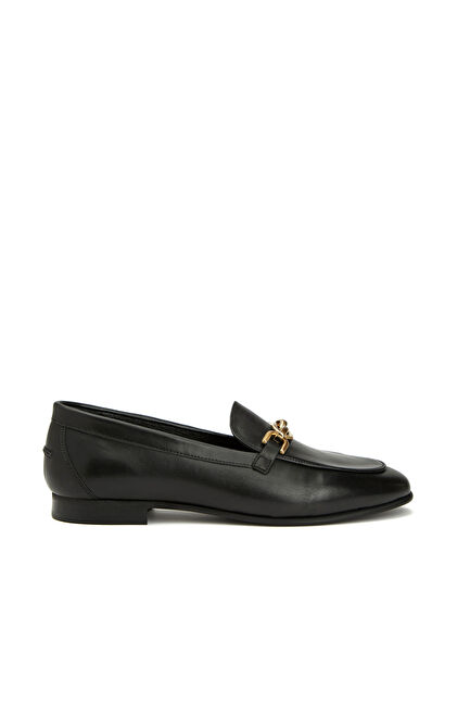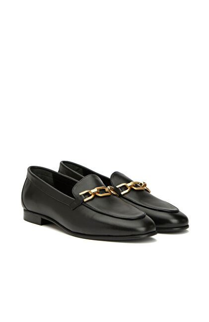 Siyah Yuvarlak Burun Kadın Deri Loafer
