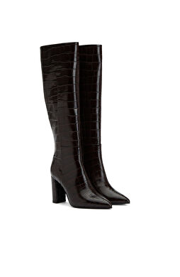 Kahverengi Kroko Desenli Kadın Deri Çizme