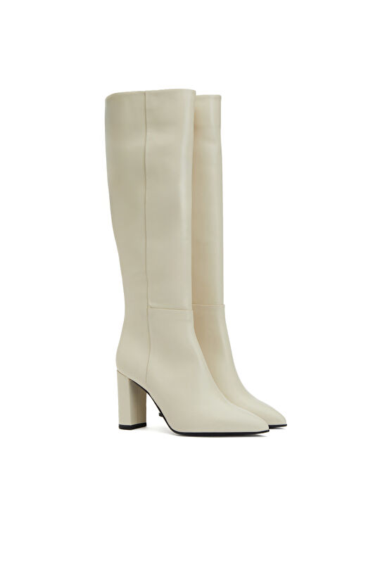 Kırık Beyaz Kadın Deri Çizme