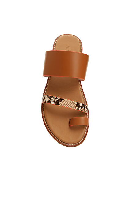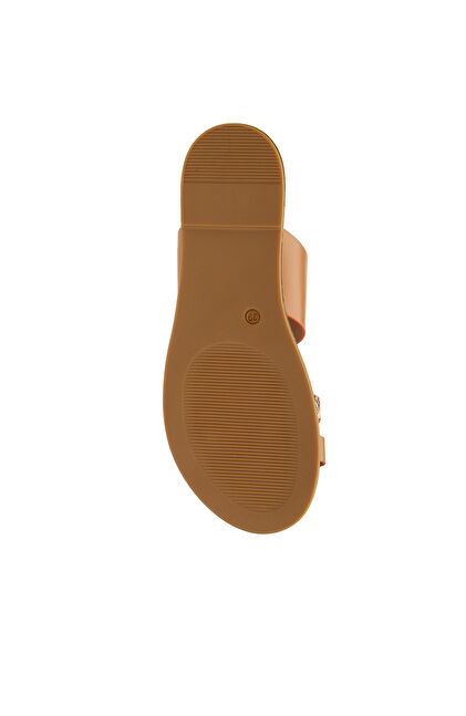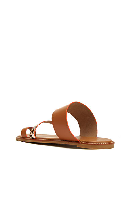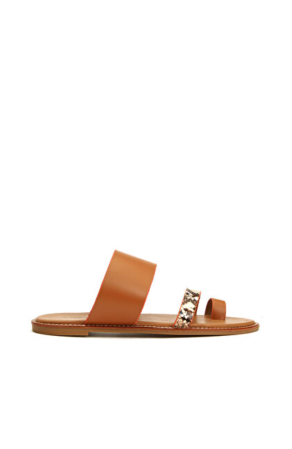 Taba Leopar Desen Bantlı Kadın Deri Terlik