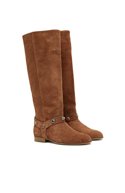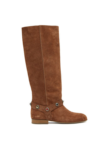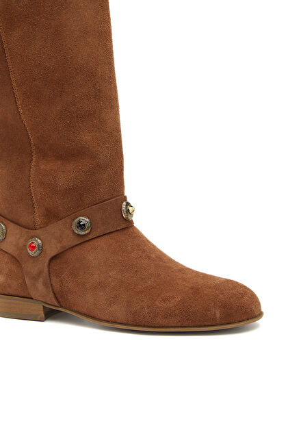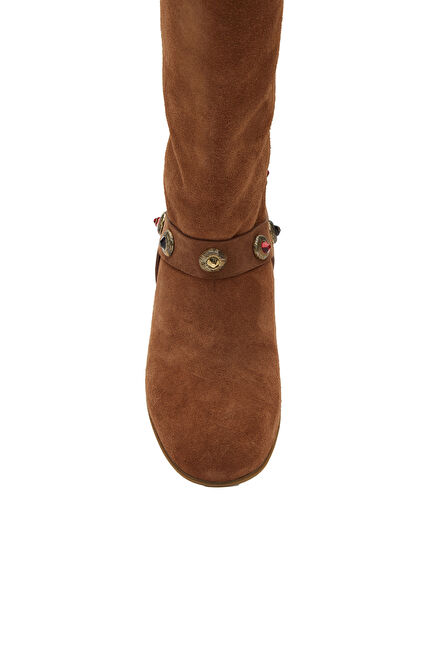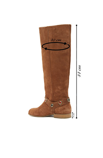 Taba Taşlı Kadın Süet Deri Çizme