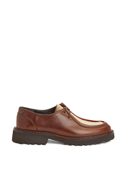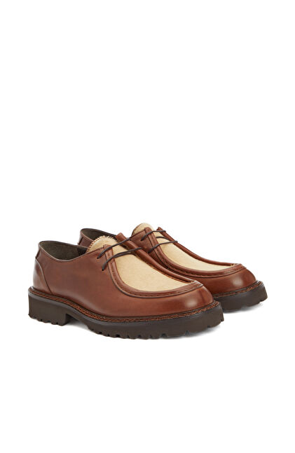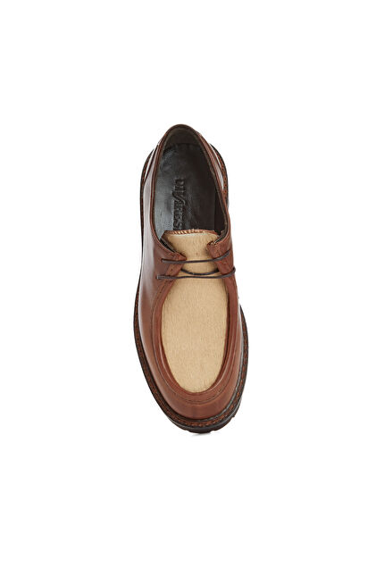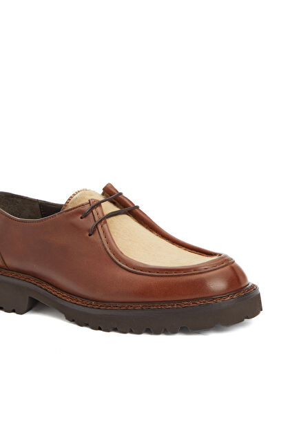 Taba Tay Tüyü Garnili Kadın Deri Ayakkabı
