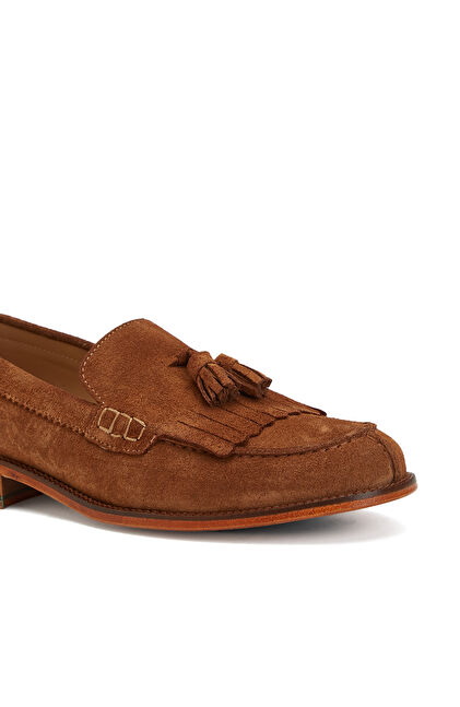Tarçın Püskül Detaylı Kadın Deri Loafer