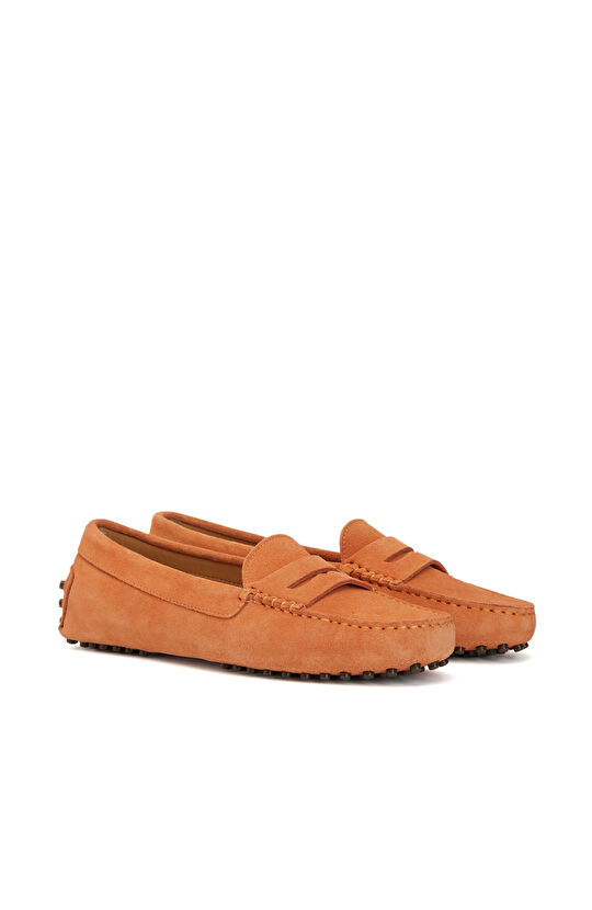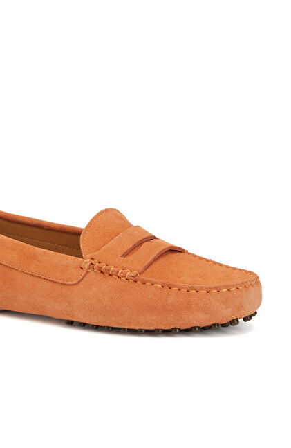 Turuncu Kadın Günlük Rahat Süet Loafer