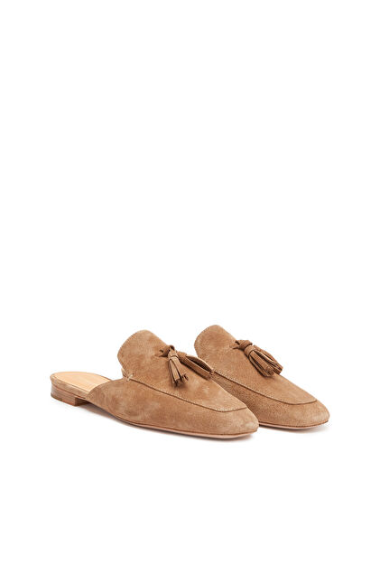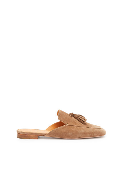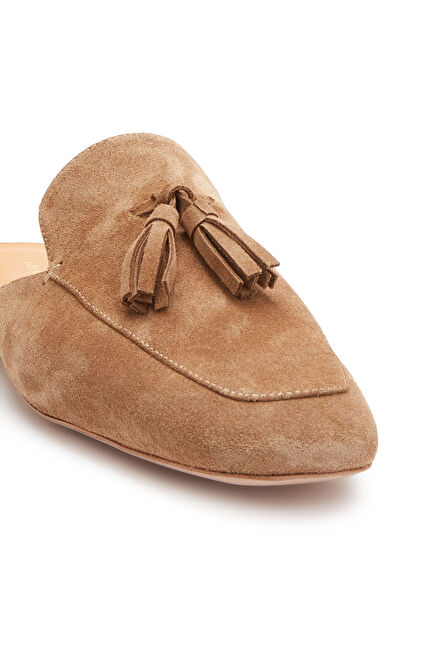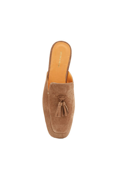 Tütün Püskül Detaylı Kadın Süet Terlik
