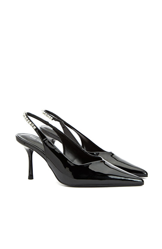 Siyah Taşlı Topuklu Ayakkabı